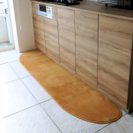 織物の優しいふみ心地がキッチンタイムを心地よくしてくれます。 裏面は滑りにくい加工を施しています。 クールでモダンな曲線が印象的な「ゆりかご型」、 カラーはマニッシュなイメージの「オーカー」でキッチンを演出! アクリル100%、製造地:泉佐野市
