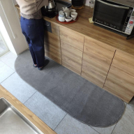 織物の優しいふみ心地がキッチンタイムを心地よくしてくれます。 裏面は滑りにくい加工を施しています。 クールでモダンな曲線が印象的な「ゆりかご型」、 カラーはクール&モダンな雰囲気の「スチール」でキッチンを演出! アクリル100%、製造地:泉佐野市