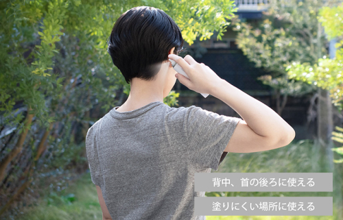 紫外線吸収剤不使用で白浮きしにくい+無香料で、首筋や髪、頭皮などの塗りにくい場所にも安心してお使いいただけます。