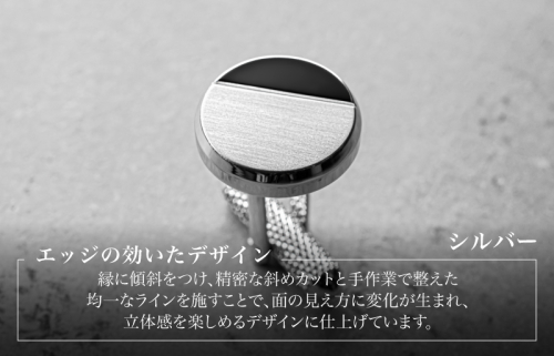 精密な切削加工でエッジに傾斜をつけた、真鍮製ラウンドカフスです。落ち着いたサテーナ加工と光沢ある鏡面仕上げを組み合わせた立体的なデザインが特徴。袖口を上品かつスマートに引き立てる逸品です。(ブランド型番 Tps-198)