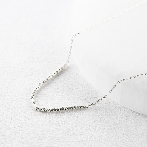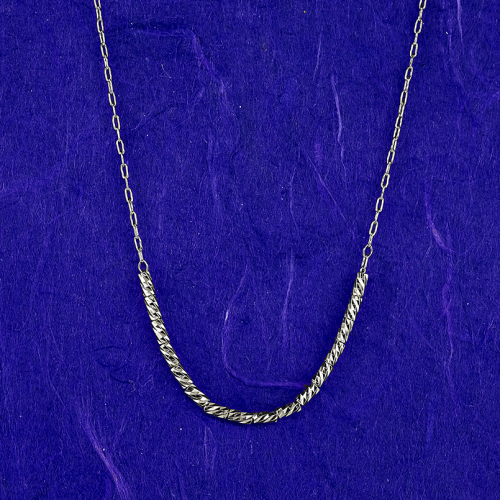 純プラチナの粗目小豆チェーン中央に、ミラーカットパイプが高貴で知的に輝くネックレス