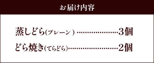 【人気どら焼き2種 5個入】和三盆 蒸しどら(プレーン)× 3 どら焼き(てらどら)×2 餡 ふわふわ しっとり食感 あいちの匠 ものづくりマイスター 優秀和菓子職 愛知県優秀技能者表彰受賞 H181-008