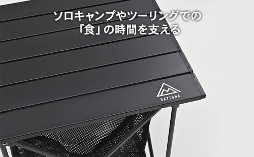 現在、キャンプ用品を広く展開しているデイトナが、ソロキャンプやツーリングでの「食」の時間を支えるために作り上げたのが、この『コンパクトアルミテーブル+』です。