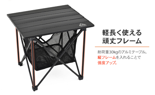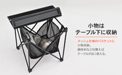 コンパクトアルミテーブル+ テーブル キャンプ ソロキャンプ ツーリング コンパクト スリム 頑丈 安定感 メッシュバスケット 静岡県 森町