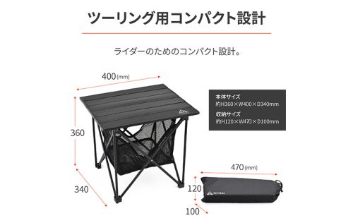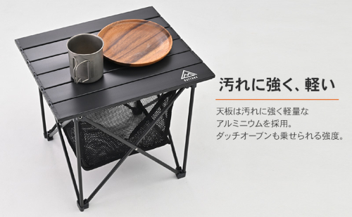 - コンパクトアルミテーブル+ テーブル キャンプ ソロキャンプ ツーリング コンパクト スリム 頑丈 安定感 メッシュバスケット 静岡県 森町