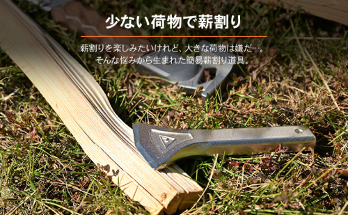重量があってかさばる刃物の代わりに、スマートに持ち運べる「タガネタイプ」の薪割り道具。