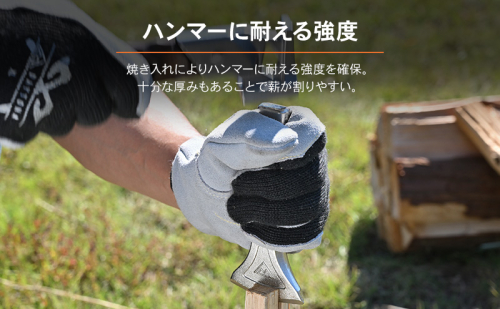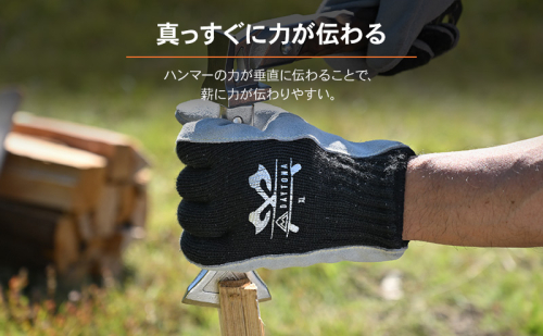 薪にタガネを当て、ハンマーで叩くだけで、誰でも簡単・安全に薪を割ることができます。