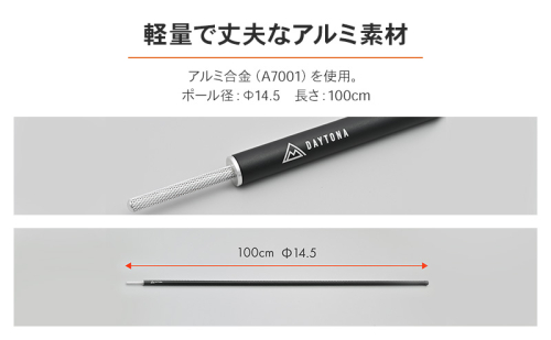 現在、キャンプ用品を広く展開しているデイトナが、より緻密なサイトレイアウトを実現するために開発したのが、この『アルミポール100』です。