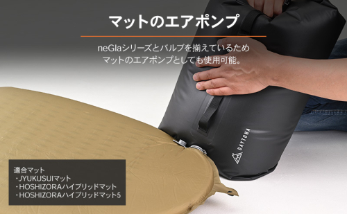 収納後に余分な空気を抜いてコンパクトに圧縮できるだけでなく、デイトナ製「HOSHIZORAハイブリッドマット」のエアポンプとしても使用可能です。