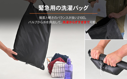 〇圧縮機能:収納後に中の空気を抜くことで、荷物を限界までペチャンコに。積載スペースにゆとりを生み出します。