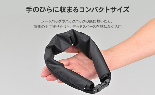 これにより、シートバッグやバックパックの底に敷いたり、荷物の上に被せたりと、デッドスペースを無駄なく活用できます。