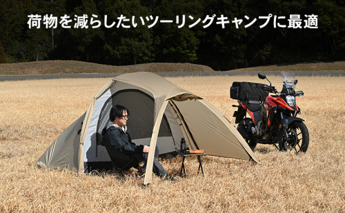 タープを持ち歩く必要がないため、荷物を減らしたいツーリングキャンプに最適です。