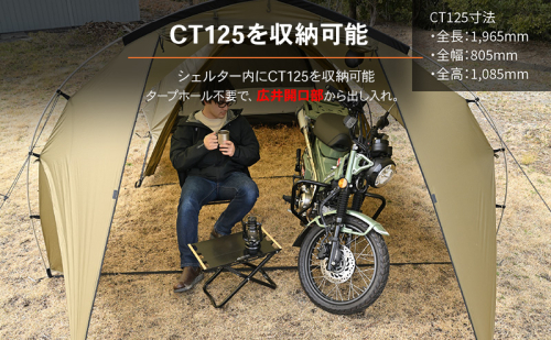 広大な空間を生み出しながらも、収納時はバイクに積載しやすいコンパクト設計。