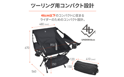 ツーリングやアウトドアでの「移動」と「休息」のバランスを知り尽くしたデイトナが、どこでも“ちょうどいい”居場所をつくるために開発したのが、この『ワイドレストチェア』です。
