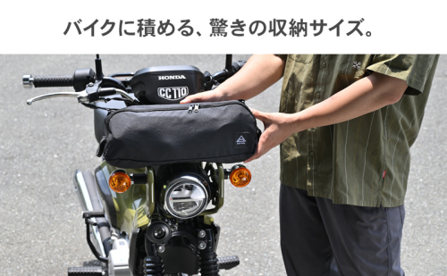 付属の収納袋に入れれば、バイクのシートバッグやコンテナの隙間にもスマートに収まります。