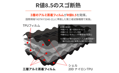■「底冷え」を遮断する、最強の盾。冬キャンプの常識を変えるR値8.5。