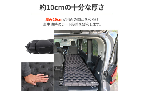 厚みはたっぷり10cm。地面のゴツゴツした凹凸はもちろん、車中泊時のシートの段差も一切感じさせません。