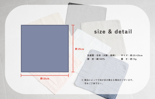 大阪泉州のタオル職人がひとつひとつ丁寧に心を込めて作製した安心のガーゼハンカチです。