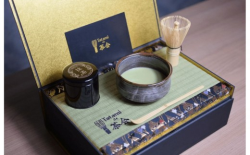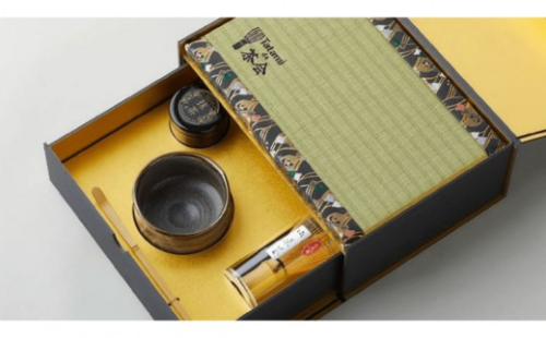 畳職人が一つひとつ丁寧に仕上げたミニ畳トレーと茶道具を専用化粧箱に、コンパクトにセット。