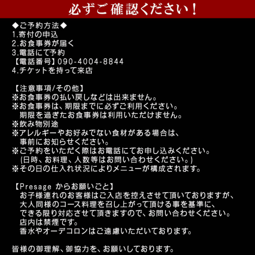 唐津の食材を使用 本格フレンチコース お食事券 1名様分 フランス料理 フルコース ランチ ディナー チケット 食事券 Restaurant Presage レストラン プレサージュ