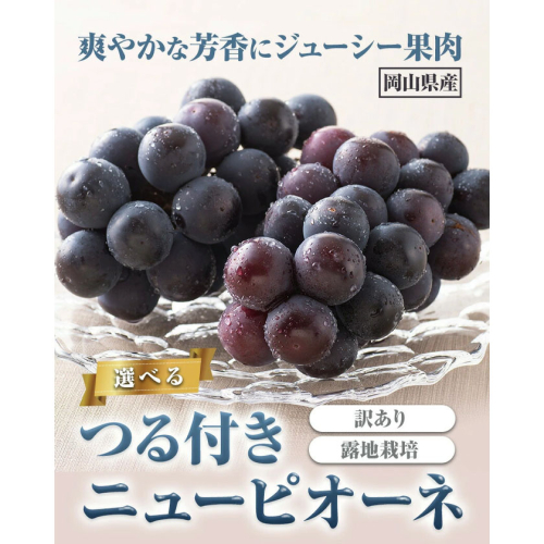 【先行予約】岡山県産 選べる 訳ありつる付きニューピオーネ 2房 530g以上 3房 530g以上 露地栽培 有限会社ホーティカルチャー神島《2026年9月中旬-10月中旬頃出荷》岡山県 浅口市 葡萄 果物【配送不可地域あり】