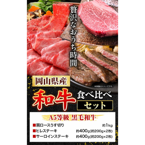 岡山県産和牛 食べ比べセット A5等級 黒毛和牛 肩ロースうす切り 約1kg サーロインステーキ 400g ヒレステーキ 400g 有限会社ホーティカルチャー神島《30日以内に出荷予定(土日祝除く)》岡山県 浅口市 牛肉 ステーキ A5【配送不可地域あり】