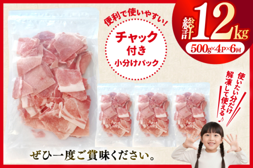 - 北海道産 豚肉 豚こま切れ 小分け 2kg ( 500g × 4P ) 6回 定期便 総計 12kg [スターゼン 北海道 砂川市 12260977 ] 小間切れ 豚 国産 冷凍