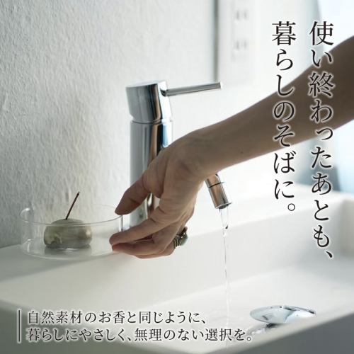 お仕事前のデスクまわりやヨガ・瞑想の空間づくり、来客時のおもてなしとしても最適。入浴後や休日のひとときにそっと寄り添い、穏やかな香りが日常をやさしく満たします。