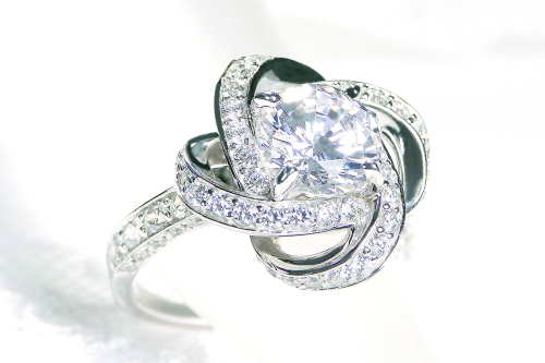 センターに、厳選された1.4カラットの大粒ダイヤモンドをセッティング。