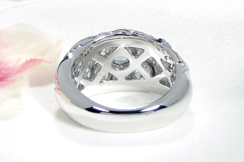 クロスデザイン部分のメレダイヤは、彫り留めと言われる難易度の高い職人の技法でセット。