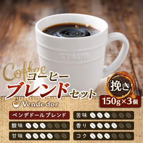 - 【定期便 12ヶ月連続】コーヒーブレンドセット【挽き150g×3個セット】 コーヒー豆 人気 コーヒー 珈琲豆 ベンデドール 珈琲 自家焙煎 170000円 定期便 12回 北海道 釧路町 釧路超 特産品