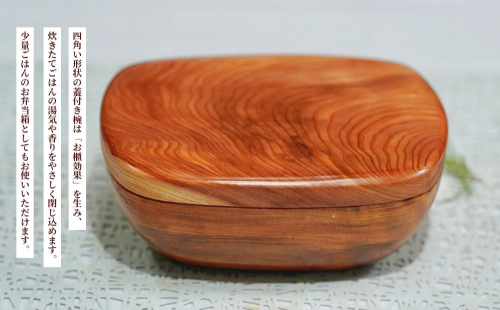 四角い形状の蓋付き椀は“お櫃効果”を生み、炊きたてごはんの湯気や香りをやさしく閉じ込めます。