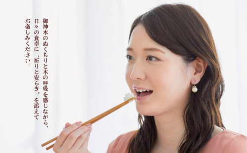 御神木のぬくもりと木の呼吸を感じながら、日々の食卓に“祈りと安らぎ”を添えてお楽しみください。