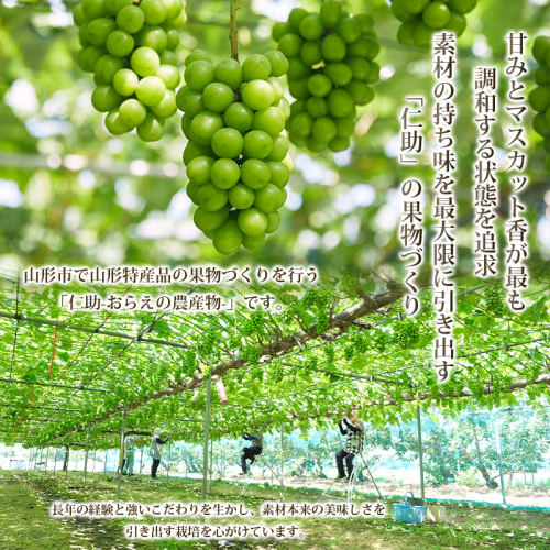 食べてくださる方の喜ぶ顔を思い浮かべながら、大切に育てた仁助のシャインマスカット。