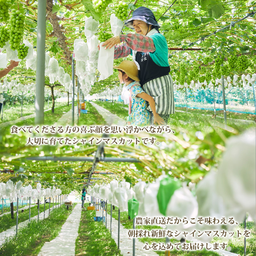 農家直送だからこそ味わえる、朝採れ新鮮なシャインマスカットを心を込めてお届けします。