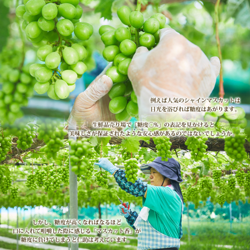 食べてくださる方の喜ぶ顔を思い浮かべながら、大切に育てた仁助のシャインマスカット。