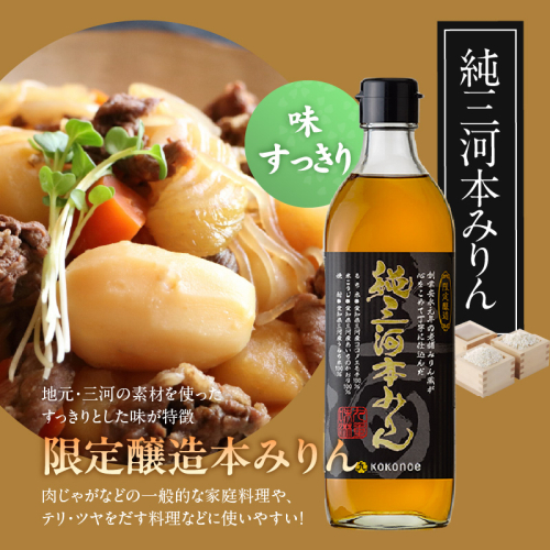 「純三河本みりん」は、愛知県三河地方の原料米だけを使ったこだわりの一品。