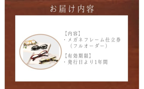 - フルオーダーメガネフレーム仕立券(6,000円分)1枚