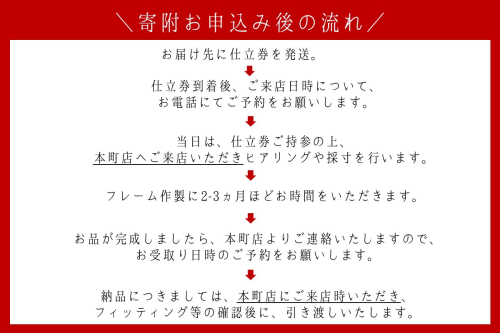 4:フレーム作製に2ー3ヵ月ほどお時間をいただいております。
