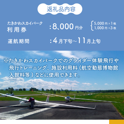 たきかわスカイパーク利用券【8千円分】北海道 滝川市 体験 チケット 飛行 グライダー 観光