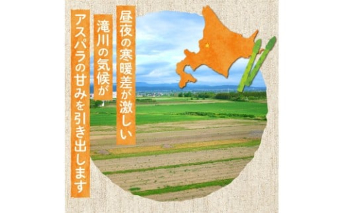 滝川市は、昼夜の寒暖差があり大変美味しいアスパラが収穫出来ます。