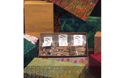 セット内容:焼き菓子 詰め合わせ3種3個入 アトリエキノの箱入 ・ブランクッキー ・山ぶどうのブランクッキー ・ブラングラノーラ