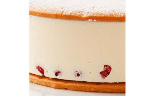 シンプル故に際立つ絶妙なクリーム。北海道産の濃厚な厳選したチーズをサクサクのクッキーでサンドした自信作。中に真っ赤なフルーツをちりばめた久しぶりの新作です。カットすると断面に見える赤い木苺が美味しくも美しいケーキです。粉砂糖を振りかけてお届けいたします。
