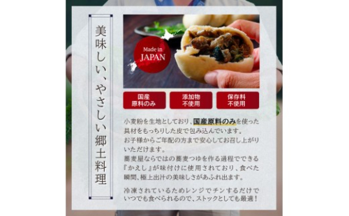 当店のおやきには霜が付着している場合がありますが、製造後のできたておやきを冷凍しているため、湯気が凍ってできるもので、品質・安全性に問題はございません。