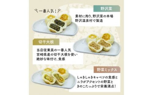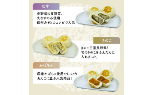 - おやき16個セット(野沢菜2、切干大根2、野菜ミックス2、なす2、きのこ2、かぼちゃ2、あんこ2、うの花(おから)1、きんぴらごぼう1)