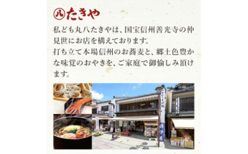 【そば】当店の手打ち生そばは、北信濃(信濃町、高山村、飯山)の農家を契約栽培をした、秋そば(玄そば)を使用しております。石臼で製粉、熟練の職人がに八蕎麦に打ち、たれは、利尻、羅臼、日高の昆布と、鰹節、宗田節、鯖節から出汁をとり、やや甘めのたれに仕上げております。打ち立てを急速冷凍しお届けいたします。
