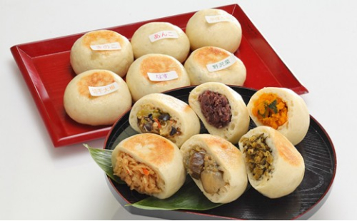 - おやき10個セット(野沢菜2、切干大根2、野菜ミックス2、なす1、きのこ1、かぼちゃ1、あんこ1)そば餅10個