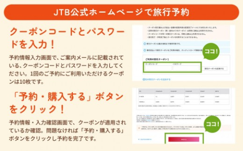 ・店舗、お電話、JTBホームページ(HP)での旅行予約時にご利用ください。