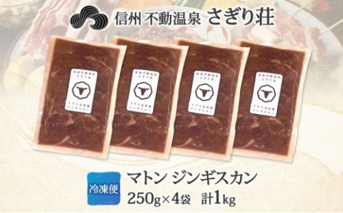 長野県 不動温泉 さぎり荘 謹製 マトンジンギスカン 250g×4袋 計1kg 羊 肉 味付き マトン ジンギスカン 焼肉 BBQ 冷凍 小分け お取り寄せ 産地直送 信州新町 送料無料 長野市