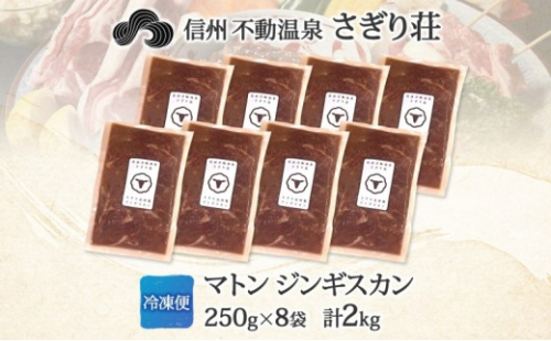 長野県 不動温泉 さぎり荘 謹製 マトンジンギスカン 250g×8袋 計2kg 羊 肉 味付き マトン ジンギスカン 焼肉 BBQ 冷凍 小分け お取り寄せ 産地直送 信州新町 送料無料 長野市